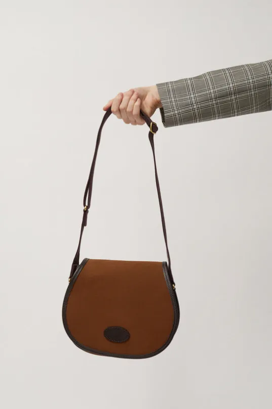 Since 1887, Brady has offered quality sporting leather goods. The Aire is made from triple-layered cotton canvas and trimmed with leather. DETAILS Cotton & Cow Leather. Professionally Clean Only. Made in England. FIT Bag Measurements: Height 8"; Length 10"; Width 3.5"; Strap Length 46.5".