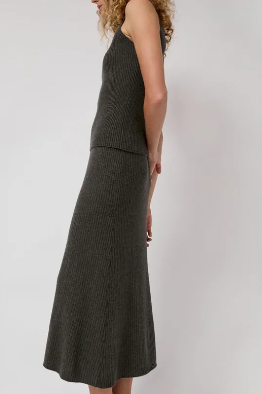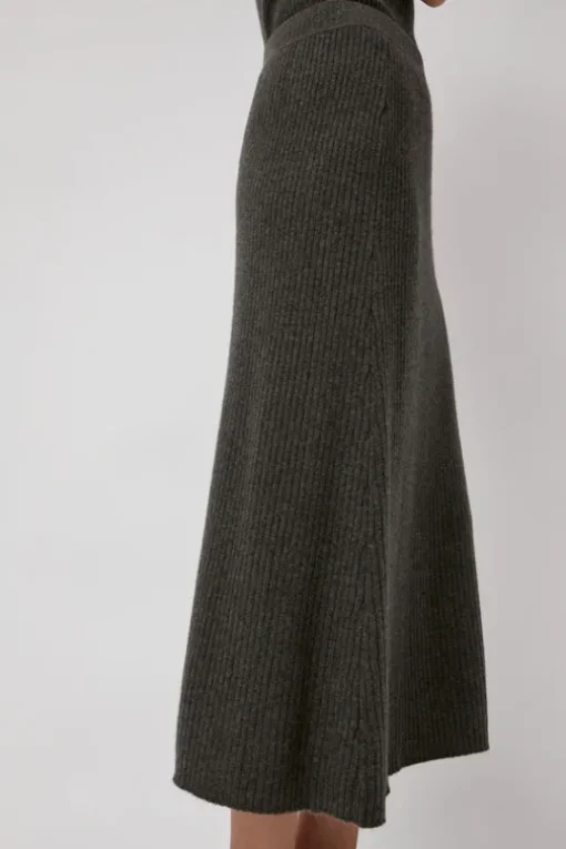 Ribbed pull-on midi skirt knit in Mongolian cashmere. Straight fit. For the full look, wear with the Modern Weaving Cashmere Mock Collar Rib Top in Olive Melange.