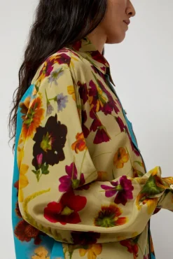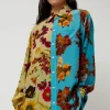 Oversized collared button-down in oversized floral print. Looks great on its own or worn open as a duster.